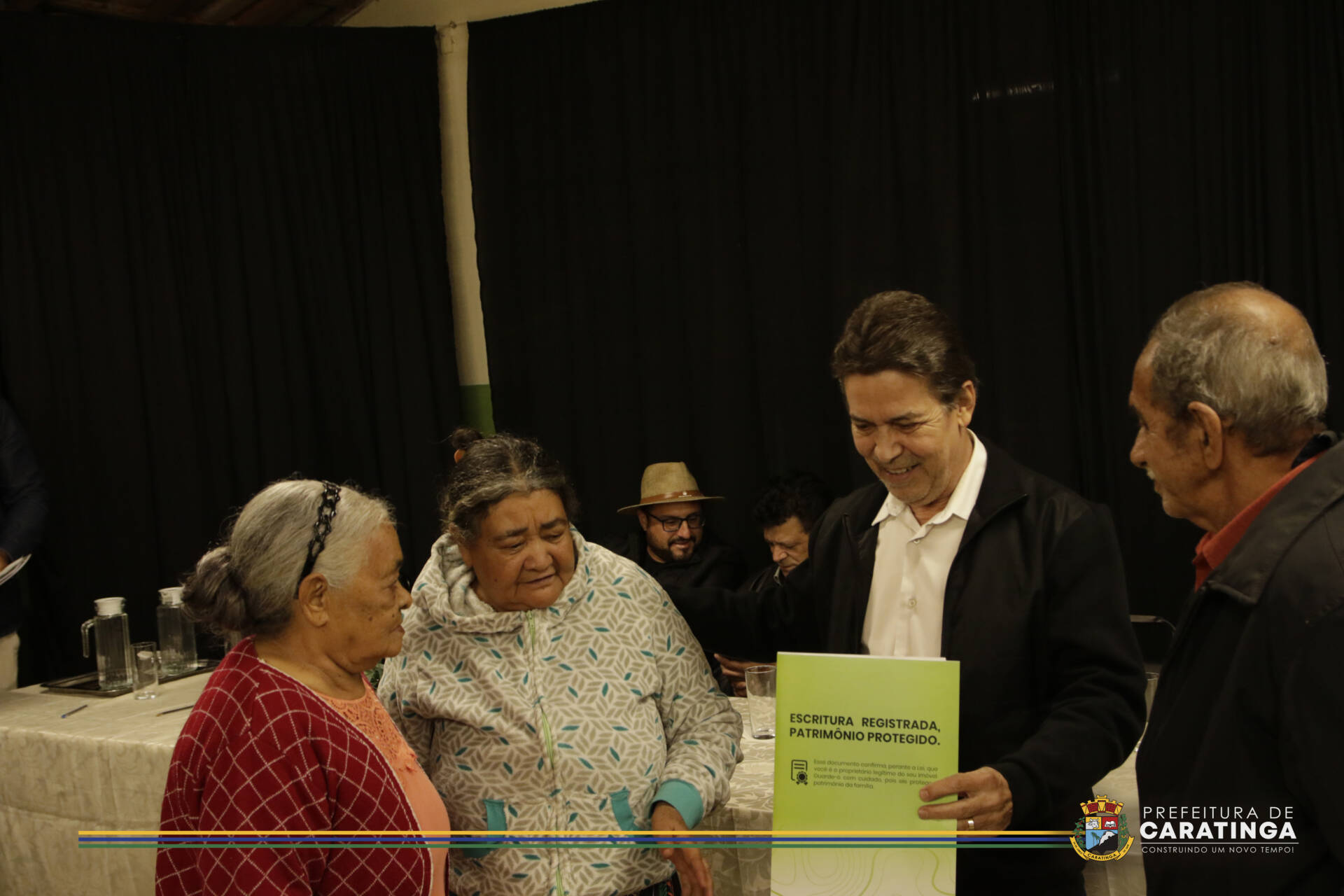 A solenidade de entrega das primeiras escrituras do distrito mobilizou a comunidade, lideranças políticas e o Cartório de Registro de Imóveis de Caratinga, importante parceiro para o sucesso do “Morar Legal”. Além do prefeito, participaram da solenidade em Sapucaia o presidente da Câmara Municipal, Cleider Costa de Medeiros, e os vereadores Ricardo Fidélis – Angola, Juarez da Silveira, Rosélia Gomes – Zelinha e João Levindo – Catita, os secretários municipais Odiel de Souza (Desenvolvimento Econômico e Turismo) e Manoel Dornelas (Desenvolvimento Social), e os diretores da Versaurb Hebert Amaral e Bruno Alcântara.
